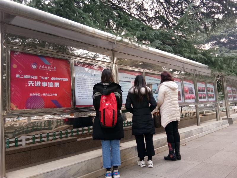 为大力宣传和深入学习第二届研究生“五导”卓越导学团队的先进事迹、风采和经验,讲述他们的平凡故事,彰显他们的卓越追求,努力营造教学相长、师生相宜、团队共建、和谐发展的导学文化氛围。12月17日起,学校在千佛山校区东方红广场、长清湖校区C区广场宣传栏举办第二届研究生“五导”卓越导学团队先进事迹展。