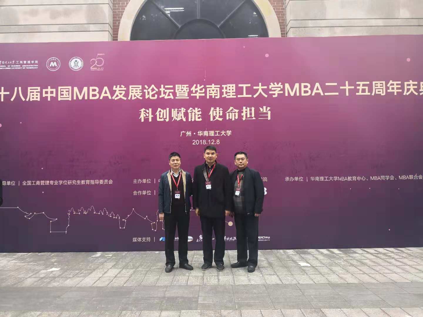 一年一度MBA盛典——第十八届中国MBA发展论坛于2018年12月7日-9日在华南理工大学盛大召开。本届论坛以“科创赋能,使命担当”为主题,论坛云集全国众多商学院院长或MBA中心主任、教师代表、MBA联合会主席、校友代表、MBA学员等。我校商学院常务副院长、MBA中心主任夏同水、院长助理、MBA中心副主任朱仁奎、孙文星共同参加了盛会。