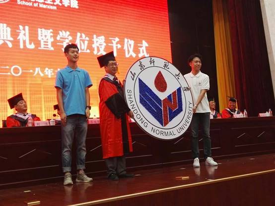 毕业典礼最后,老师与同学们间的“情谊互赠”将气氛再次推至高潮,让会场中洋溢着幸福温暖的气息。学院为每位毕业生精心准备了一副精美的青铜书签和铜质如意样式的优盘,祝愿同学们在未来人生路上多读书、勤钻研,养成终身学习的习惯,同时祝愿同学们前程似锦、顺心如意!全体毕业生同学自制的直径为131.4厘米(寓意一生一世)的“心语星愿母校情”校徽中,凝结了全体毕业生对母校和学院的美好祝福,一朝师大人、一生师大情。“一次次的飞走是为了一次次的归来,马院永远都是同学们的家,愿大家青春奋斗,一生少年!”在暖暖的祝福声中,毕业典礼圆满落幕。