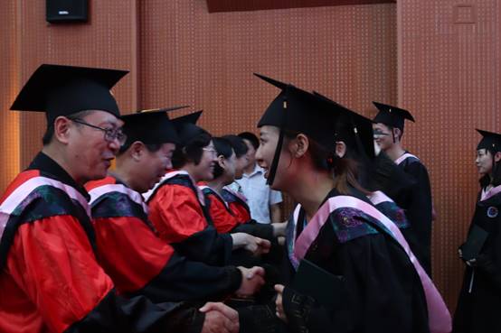 在热烈的掌声中,学位授予仪式开始。意气风发的毕业生依次走上主席台,从主席台领导老师的手中庄严接过学位证书,接受拨穗,随着流苏自右至左轻轻拨过脸庞,象征毕业生已学有所成,也寄寓着老师的深情嘱托。一次握手、一个微笑、一声祝福,收获的喜悦在这一刻悄然定格,这是每一位毕业生人生中值得永远铭记的时刻。