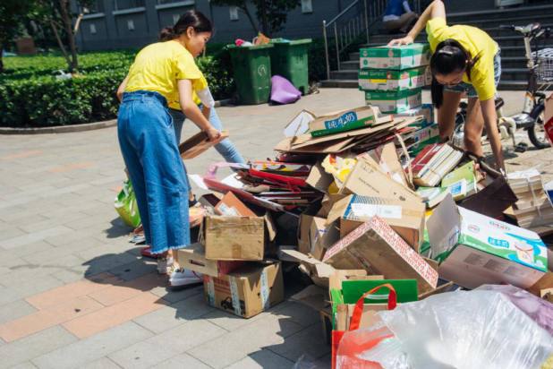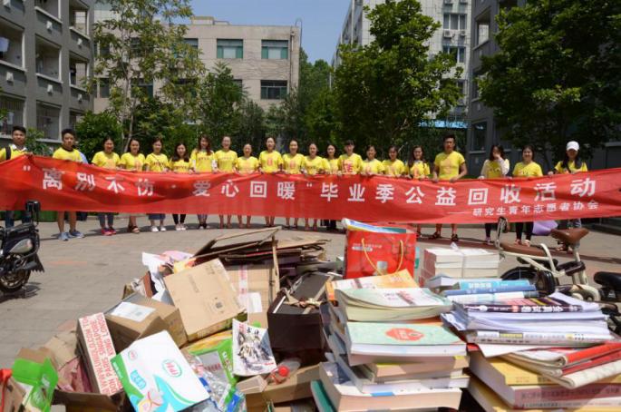 活动正式开始后,青年志愿者协会的志愿者除在指定地点等待毕业生们前来募捐杂物外,还根据各学院毕业生的需求,在各院分会长带领下进入各院宿舍,帮助清理宿舍杂物,收集可再生资源。在1与9号宿舍楼之间设立的回收点处,有一位捐赠者捐赠了一本柴静的《看见》,她说,“我希望那些有需要的孩子们可以更好地看见这个世界。”这次活动的初衷应该也是如此,让那些有需要的人得到更好的帮助。在整理回收到的废纸盒时,文学院志愿者王明霞说道:“多收一个废纸盒,就又可以给山区的孩子多买一本书了,心里想想都是甜的。”