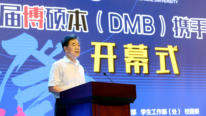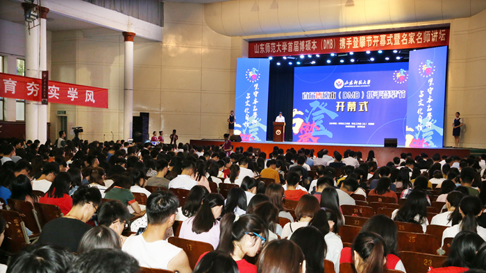 5月17日下午,山东师范大学首届博硕本(DMB)携手登攀节开幕式暨名家名师讲坛,在千佛山校区大礼堂成功举行。本次登攀节由研究生工作部、学生工作部(处)、校团委、校研究生会、校学生会联合主办。校党委书记商志晓,校长唐波,校纪委书记姚东方,山东省政府参事、校教授委员会主任陈德展等出席颁奖典礼,学校各部门、各单位负责同志、全体辅导员、教师代表、学生代表共1800余人参加了大会。开幕式由研究生工作部部长李效宽主持。