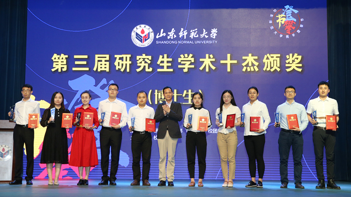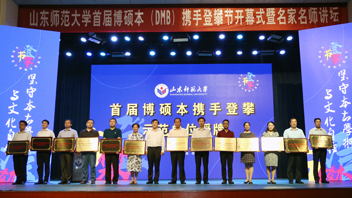 开幕式上,商志晓与导师代表李爱华、魏建、何洪彬、杨存昌、王成新、夏同水一起开启首届博硕本携手登攀节。唐波为“山东师范大学首批博硕本携手登攀示范单位”授牌。姚东方和陈德展教授分别为第三届博士生、硕士生“学术十杰”颁发了奖杯和证书。