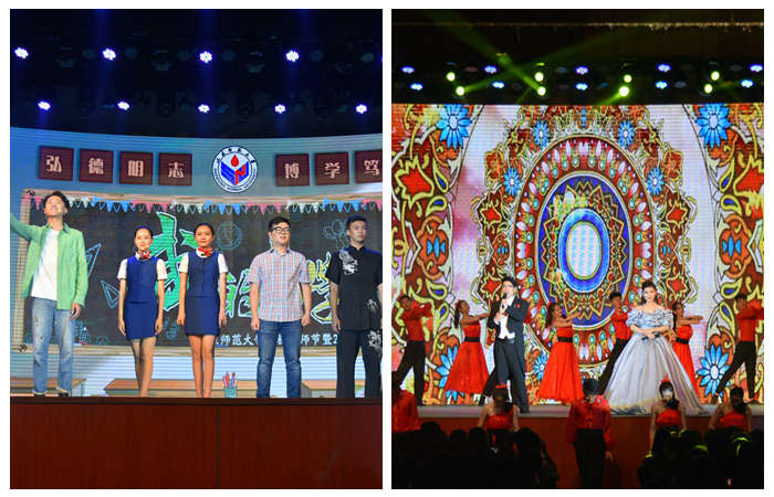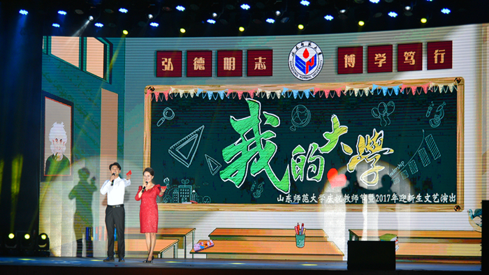 暑假前,学校提早启动演出筹备工作,于7月5日召开2017年迎新生专场演出筹备工作协调会,明确分工,落实到位。演出首次在新生军训期间举行,又恰逢教师节到来之际,将庆祝教师节与迎接新生两大主题充分凸显,完美融合,交相呼应,是演出主创人员的重要职责任务。暑假期间,在学校领导的关怀指导下,校团委积极谋划确定整体演出方案,确立了将舞台交给学生,让学生、老师当主角的演出原则,确立了将演出打造得有看点、有爆点、有泪点,既精彩夺目、又感人至深,既释放青春、又受到教育的演出目标。为此,学校专门组建了由新闻与传媒学院、文学院青年教师参与的创作班子,紧锣密鼓进行原创剧本撰写排演、原创视频录制制作。党委办公室、校长办公室、校友工作办公室、长清湖校区办公室、党委宣传部、研究生工作部、学生工作部、招生就业处、公安处、财务处、后勤管理处、工会、山东师大报社、图书馆等有关部门周密部署、精心组织,音乐学院、新闻与传媒学院、体育学院、国际教育学院、商学院等学院参演师生主动作为、刻苦排练,全校上下一盘棋,各负其责、通力合作,齐心合力唱好迎新大戏。文艺演出的成功举办彰显了学校办学成就,传递了青春师大朝气,展现出山东师大人奋发有为、开拓进取的壮志豪情,表达了对2017级新同学的热烈欢迎和对全校老师教师节的美好祝福。