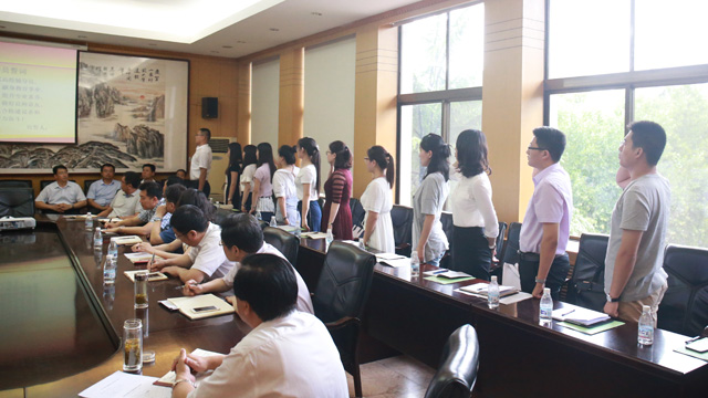 培训会上,王焕斌向15名新入职辅导员颁发了《加强和改进新形势下高校思想政治工作十谈》、2017年辅导员培训班材料汇编等学习资料和辅导员工作手册。15名新入职辅导员进行了庄严的入职宣誓,铿锵有力的辅导员誓词体现出了新入职同志对辅导员工作的热爱和做好学生教育管理工作的决心。