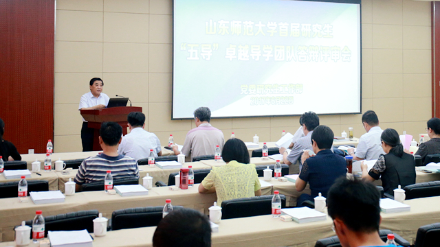 为深入学习贯彻全国、全省和学校思想政治工作会议精神,全面贯彻落实学校“卓越研究生教育”理念,强化导师德育意识,发挥好研究生导师“导学习”“导思想”“导人生”“导科研”“导生活”的首要责任人作用,扎实推进我校研究生思想政治工作。6月22日,学校在千佛山校区成功举办首届研究生“五导”卓越导学团队答辩评审会。校党委副书记王焕斌、副校长王少华、校纪委书记姚东方出席评审会,学校学术机构专家代表、校机关各部门和各学院负责同志、各导学团队师生代表共同参加评审会。会议由研究生工作部部长李效宽主持。
