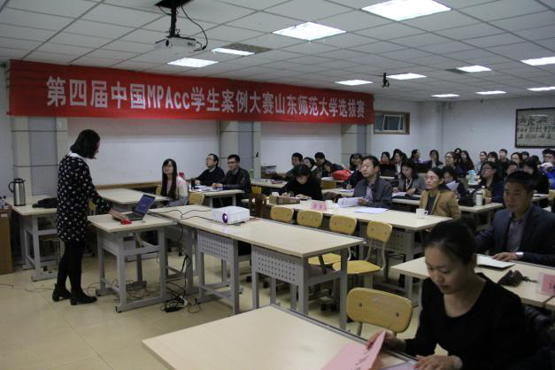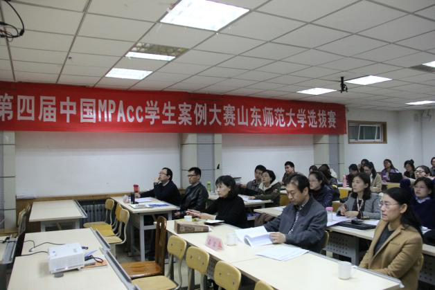 为促进学生全面发展,积极备战第四届中国MPAcc学生案例大赛,由山东师范大学研究生工作部主办,商学院承办的第四届中国MPAcc学生案例大赛山东师范大学选拔赛,于3月24日上午在千佛山校区逸夫楼411教室举行,研究生工作部副部长于铁、商学院党委副书记孙芙蓉、商学院副院长刘丽娜、财务与会计系主任朱仁奎出席了本次大赛,财务与会计系副主任张晓燕,教师宋文洋、朱红红、曹乐、田瑞岩、王金磊、李阳担任评委,6支研究生队伍以及26支本科生队伍参加了本次预选赛。