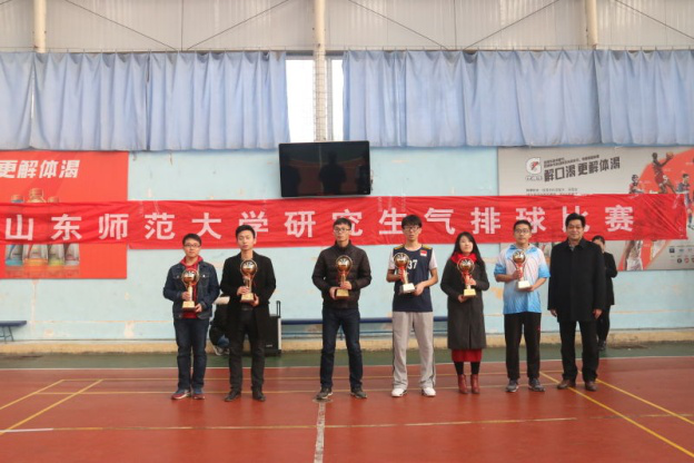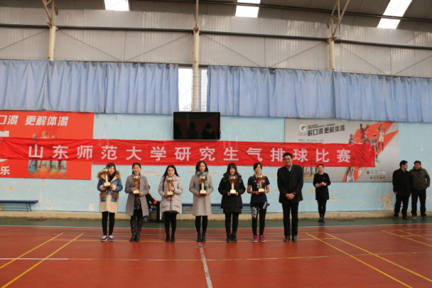 12月15日下午,由党委研究生工作部、校研究生会主办,体育学院协办的2016年山东师范大学研究生气排球比赛在千佛山校区的风雨操场落下帷幕。赛后,学校举行了颁奖仪式。党委研究生工作部部长李效宽、副部长于铁,研究生院副院长王敬政,体育学院副院长葛树林、副书记张培福等领导出席颁奖仪式并为获奖团体和个人颁发奖杯和荣誉证书。
