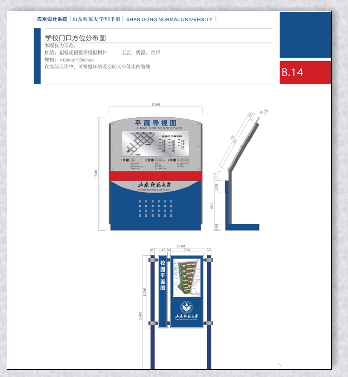 《管理办法》对学校视觉形象识别系统的组成体系、管理机构、使用规范、责任追究等内容进行了约束和规范。《SDNU VI手册》详细列出了视觉形象识别系统的基础系统、应用系统的使用规范,其中包括学校标识、标准色、标准字体和组合方式,以及应用系统在办公用品、事务用品、环境布置等方面的衍生使用范式等相关内容。