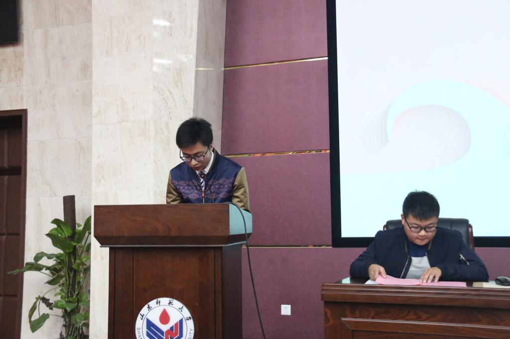 大会伊始,执行委员会主席庄识氐宣布上一届志愿者服务优秀个人和志愿服务优秀团体名单。随后,公共管理学院雨点公益志愿服务队代表徐鹏凡进行活动成果展示和心得分享。雨点公益服务队在一年的工作中,将目标定位于济南的残疾人群,深入走进七个自闭症家庭环境中,全心全意为他们服务,包括为他们做心理治疗、帮助他们开网店、开通直播平台等,以多种形式帮助他们融入温暖的社会环境之中。徐鹏凡表示志愿者活动让团体成员奉献爱心的同时,也收获了心灵上的慰藉和团队协作的快乐。紧接着,青年志愿者协会副会长刘文冬宣布了新一届志愿者协会成员名单。