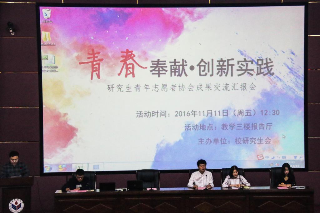 11月11日中午,“青春奉献•创新实践”青年志愿者协会成果交流汇报暨新一届青年志愿服务队成立大会在千佛山校区教学三楼报告厅举行。校研究生会执行委员会主席庄识氐、公共管理学院雨点公益志愿者服务队代表徐鹏凡、山东师范大学第17届支教团代表韩斐琳、各学院青年志愿者协会分会成员代表参加了会议。会议由社团部部长王锡彬主持。