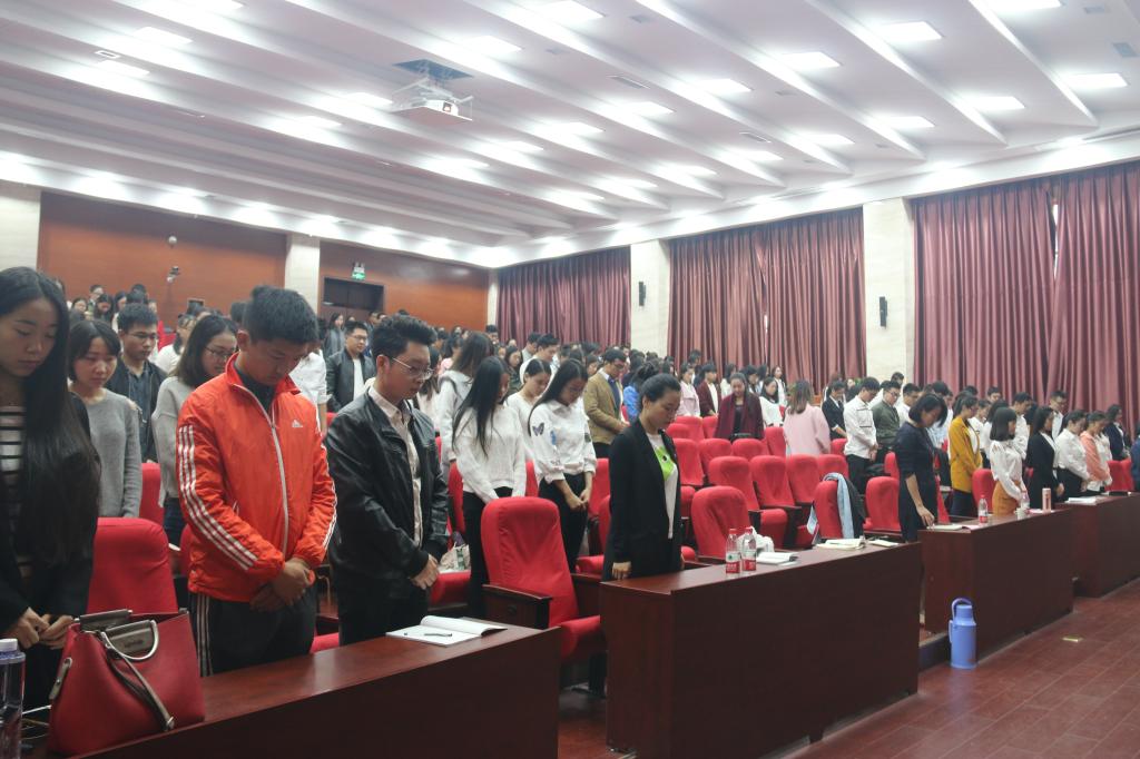 10月22日,恰逢红军长征胜利80周年纪念日,报告会前与会全体师生起立,为在长征途中和在各地革命斗争中英勇牺牲的革命烈士默哀!