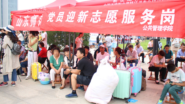 各学院提前进入迎新模式,确保提前到校新生得到贴心安置。各单位精心制作的宣传展板、迎新墙、卡通形象,或设计精美,或创意无限,使新生和家长在轻松愉悦的氛围中感受到了师大人的热情和魅力。各学院简化流程、提高效率,学生排队时间大为压缩,设置的家长驿站、专业交流咨询处为家长了解学校情况和新生尽快熟悉学习生活环境提供了极大便利。机关各单位积极做好总体策划协调、组织关系转接、宣传报道、新生入学资格审查、学籍注册、迎新现场布置、接站、安全保卫、后勤服务等工作,为迎新工作提供了坚强保障。上千名学生党员、志愿者依托党员示范岗、志愿服务岗,活跃在报到现场和校园各处,为新生和家长提供热情周到的咨询和服务,成为校园一道靓丽的风景线。