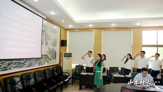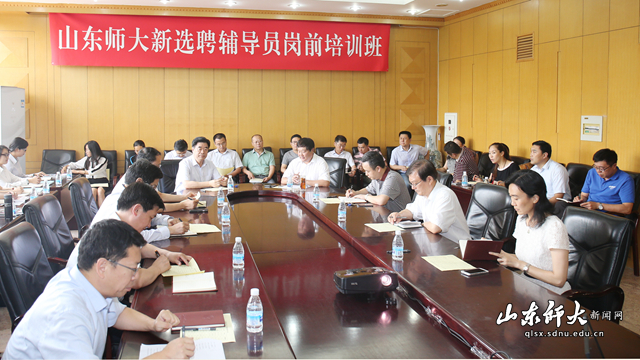 7月8日上午,学校2016年新选聘辅导员岗前培训班开班仪式在千佛山校区文化楼三层会议室举行。校党委书记商志晓、校党委副书记向来生出席开班仪式并讲话。党委办公室副主任毕研强、校长办公室主任查玉喜、党委组织部部长王洪禹、党委宣传部部长贾海宁、人事处处长孔祥云、党委研究生工作部部长李效宽、学生工作部部长于晓明等部门的负责同志、相关学院的党委副书记和2016年新选聘的13名专职辅导员参加活动。