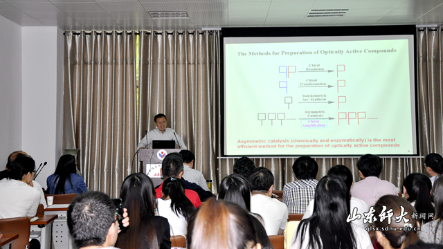 5月27日下午,应学校党委研究生工作部、化学化工与材料科学学院邀请,中国科学院院士,南开大学化学学院院长、南开大学元素有机化学研究所所长、元素有机化学国家重点实验室主任周其林院士在我校千佛山校区1201教室,做了题为“高效不对称催化氢化”的精彩学术报告。此次活动是学校研究生“治学·修身”学术论坛系列活动之一。报告会由校长唐波教授主持,化学院部分师生聆听了报告。