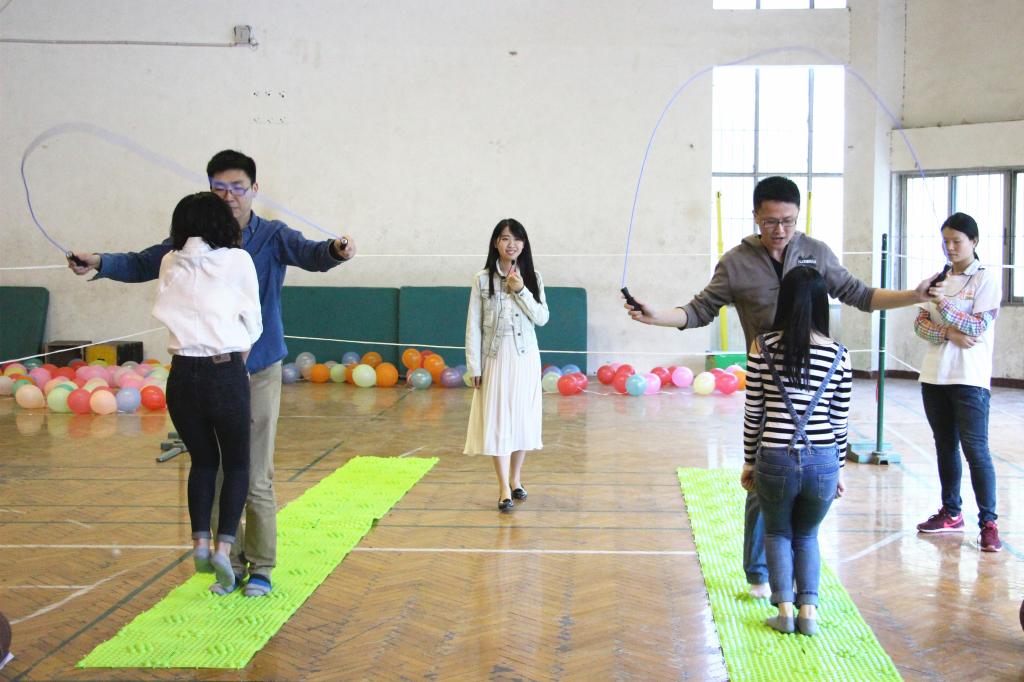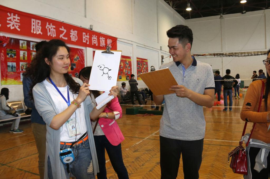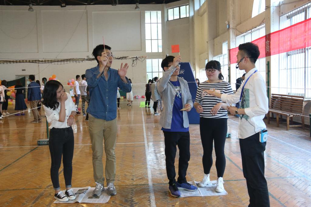 在各高校带来的《风往北吹》《野子》《董小姐》等一首首悦耳歌曲联唱声中,联谊会正式拉开帷幕。通过“挤气球”和“爱的抱抱”两个暖场游戏的进行,各高校研究生们互相协作、默契配合,现场气氛也逐渐推向了高潮。接下来的联谊活动分为主会场和分会场,主会场活动是“浪漫相遇——3分钟记忆”,即通过9次嘉宾互换进行男女面对面交流,为研究生青年们创造了一个轻松愉悦又高效广泛的交流平台,大家可以敞开心扉,研叙青春,共话成长。分会场活动是“激情相知——互动游戏”,包括“指压板大比拼”、“叠叠乐”、“你画我猜”和“踩气球”四个环节,所有游戏均要求男女嘉宾搭档完成,胜出的队伍可以获得胜利章,活动结束后会根据胜利章的数量分发奖品。在游戏过程中,参与者本着“友谊第一,比赛第二”的宗旨,不管是“指压板大比拼”中的顽强拼搏、永不言弃,还是“叠叠乐”中的互帮互助、灵活布局,不管是“你画我猜”中的默契协作、脑洞大开,还是“踩气球”中的争分夺秒、团队配合,都展现出了研究生青年积极向上、朝气蓬勃的精神风貌。在轻松愉悦的游戏氛围中,高校研究生们分享欢乐,培养默契,深度交流,促进友谊,共同享受着这场青春盛宴。