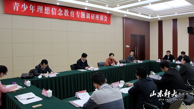 12月30日,青少年理想信念教育专题调研座谈会在千佛山校区文化楼四层会议厅召开。团省委副书记任海涛,校纪委书记、党委常委初乐娟出席会议,团省委宣传部副部长高庆军等陪同调研,学校相关部门和学院负责同志参加会议。