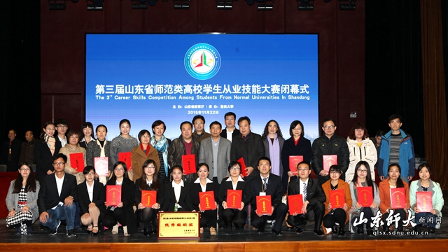 11月22日,由山东省教育厅主办的第三届山东省师范类高校学生从业技能大赛决赛在烟台落下帷幕,副校长于涛专程赶赴烟台看望参赛师生,并应邀出席大赛闭幕式。我校共派出27位选手参赛,其中14位为学校推荐选手、13位为省教育厅随机抽取选手。决赛分为学前、小学、初中、高中4个学段,语文、数学、英语、物理、化学5个学科,共14个小组,分说课、模拟上课、答辩三个阶段。经过2天激烈角逐,我校取得优异成绩,李文慧等12位学生(7名研究生)荣获大赛一等奖,其他学生获得二、三等奖,常庆等11位教师获得优秀指导教师称号,学校荣获“优秀组织奖”。一等奖选手和优秀指导教师每人获得奖金5000元。