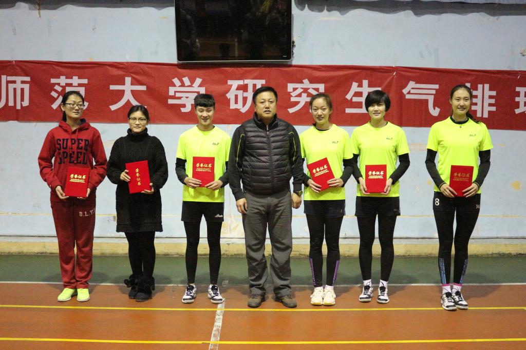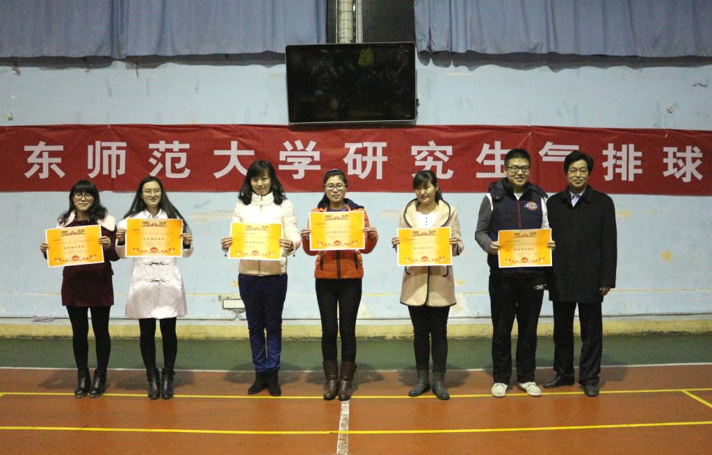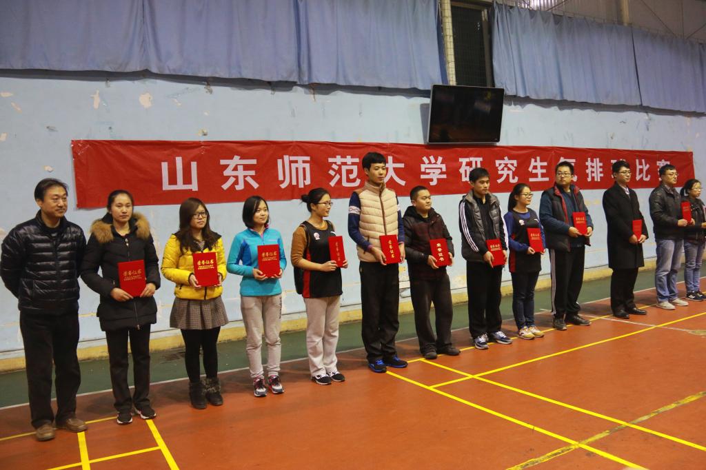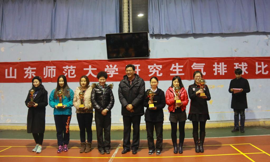 12月10日下午,由党委研究生工作部、校研究生会主办,体育学院协办的2015年山东师范大学研究生气排球比赛在千佛山校区的风雨操场落下帷幕。赛后,学校举行了颁奖仪式,党委研究生工作部、研究生院和体育学院的负责同志出席颁奖仪式并为获奖集体和个人颁发奖杯和荣誉证书。
