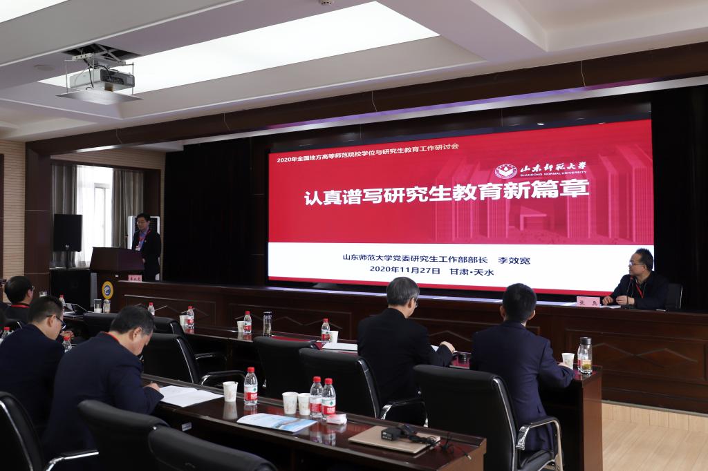 11月27日至28日,全国地方高等师范院校学位与研究生教育工作研讨会在甘肃天水师范学院举行。来自南京师范大学、福建师范大学、天津师范大学、四川师范大学、河北师范大学、重庆师范大学、山西师范大学、青海师范大学、新疆师范大学等28所全国高等师范院校和科研院所的80余名专家、领导参会。校党委研究生工作部部长李效宽受邀参会并做大会主旨发言。