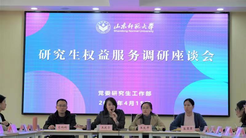 为深入推进党史学习教育,围绕研究生关注的问题开展“大走访”“大调研”“大排查”,4月15日下午,研究生工作部在长清湖校区英华楼一层东厅召开研究生权益服务调研座谈会。研究生工作部相关同志及各培养单位研究生代表共50人参加座谈会,研究生工作部副部长王庆荣主持座谈会。