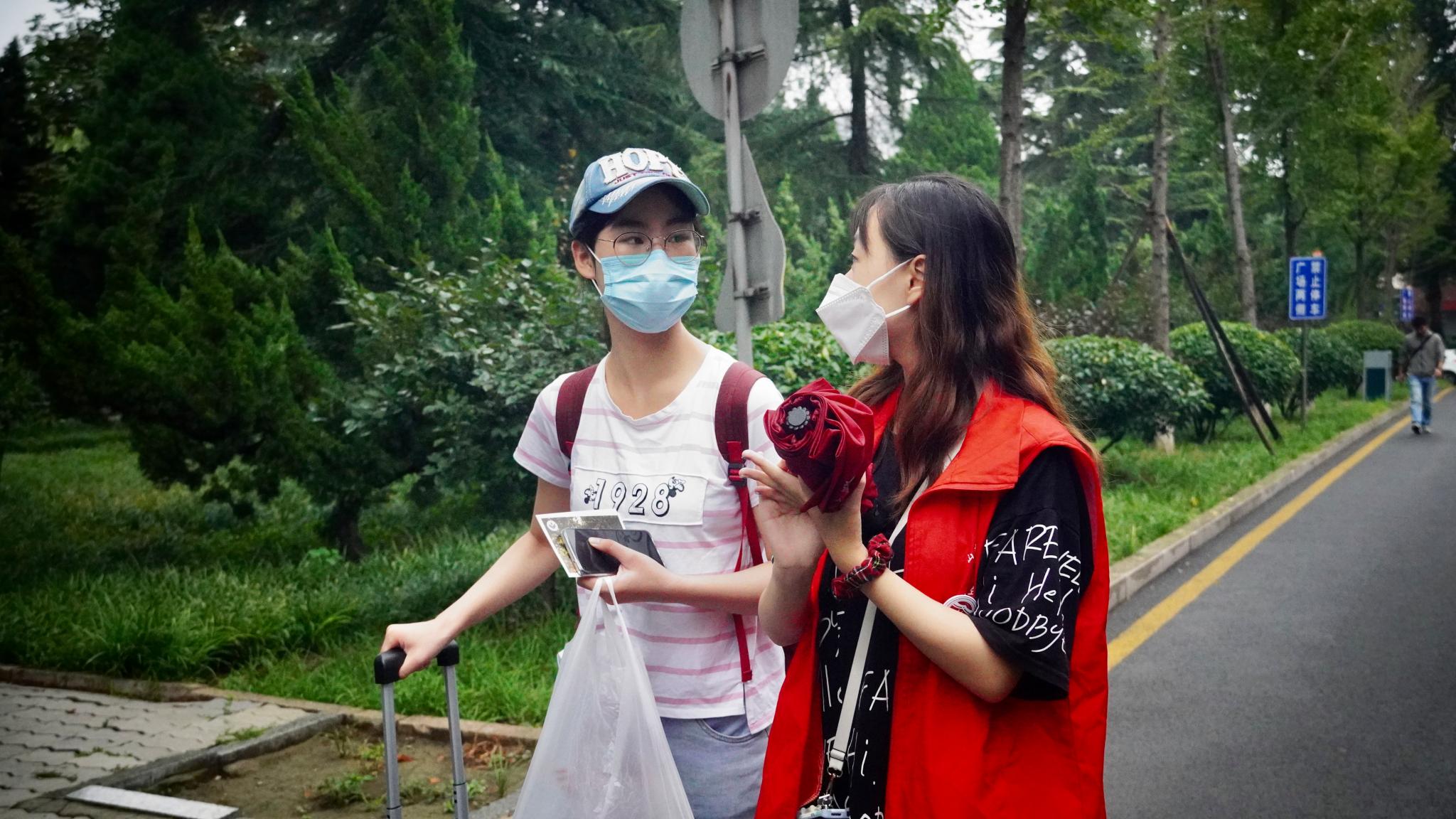 9月5日当天,微雨朦胧中,两校区各学院志愿者早早出现在东方红广场和天颐广场,迎接新生的到来。志愿者们有条不紊地引导新生完成报到,帮助新生运送行李,为新生解惑答疑,他们贴心的服务让新生感受到师大的温暖。两校区内还设置校园网办理处及生活物资购买点,尽力为新生提供更加全面的服务。