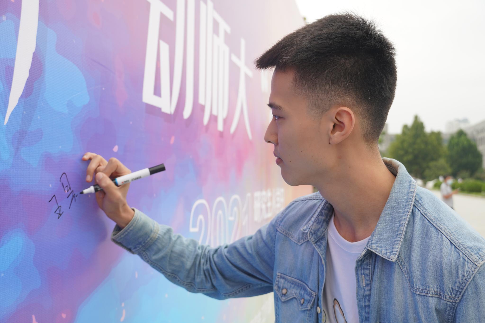 为了确保迎新工作顺利进行,研究生工作部提前筹划,精心部署,分工协作,制定了详细周到的迎新工作方案。从在校研究生中选拔优秀研究生担任迎新志愿者,承担起现场咨询、接站、引导等众多任务;为增进研究生新生的参与性,研究生工作部组织专业团队以视频形式记录迎新全过程,开展了“新花怒放”师大初体验抖音视频创作、“研究生新生入学日”文化墙签名留念等活动。迎新现场,新生纷纷走到背景板前,和家人、朋友一起合影,并在背景板上签上自己的名字,留下第一份和师大的专属记忆。