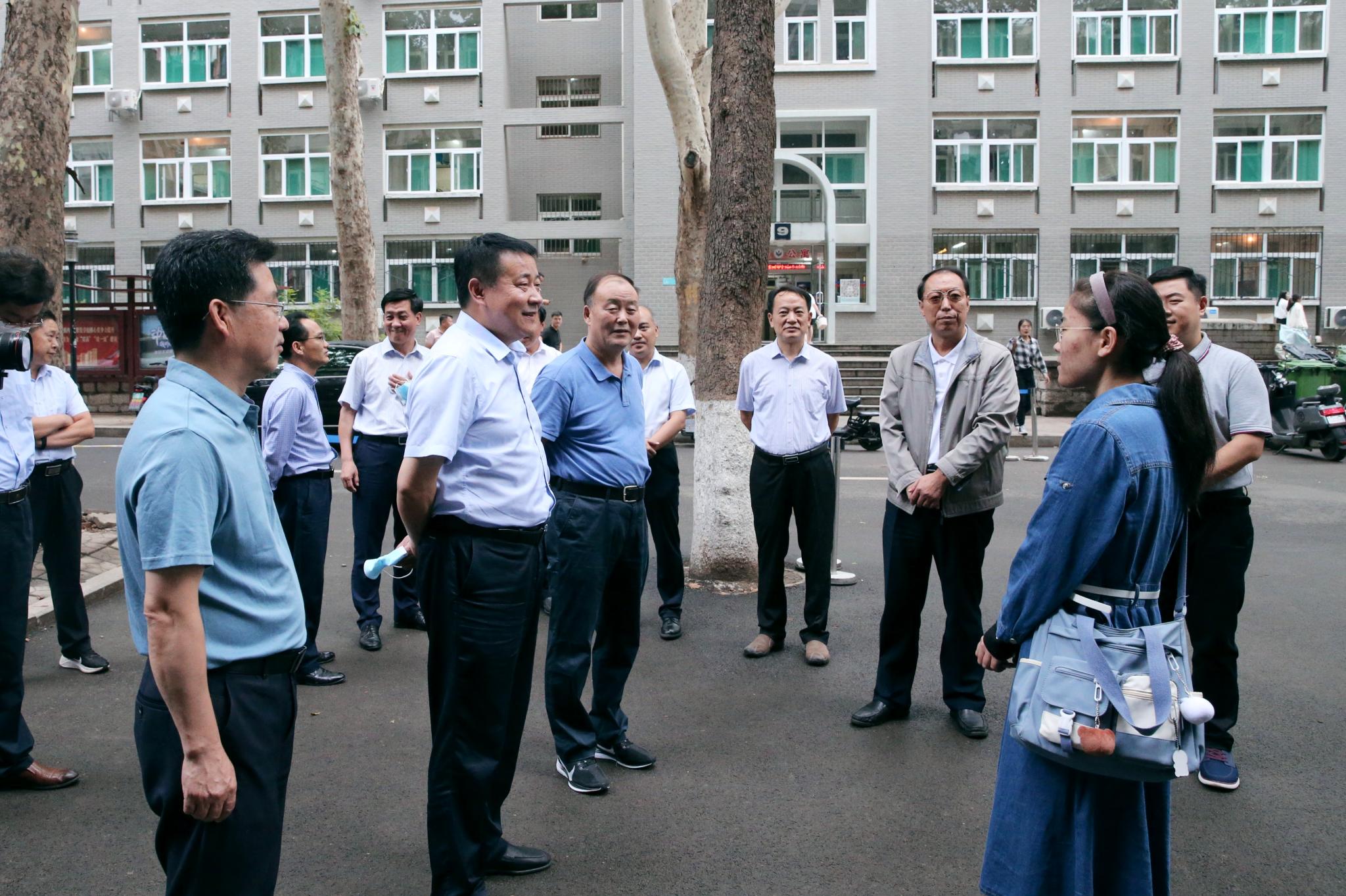 学校领导唐洲雁、曾庆良、张文新、满宝元、邢光、王传奎、万光侠、周婧、许双庆来到迎新现场,看望前来报到的新生和家长,慰问一线工作人员,检查指导迎新工作。