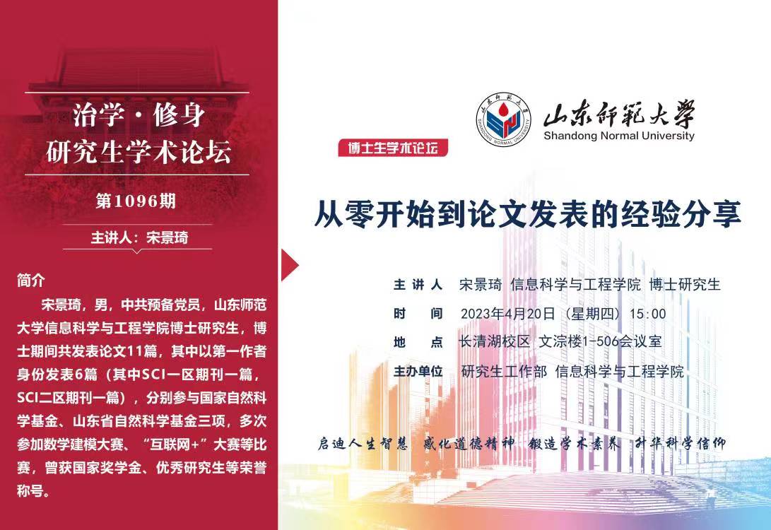 主讲人:宋景琦 信息科学与工程学院 博士研究生
